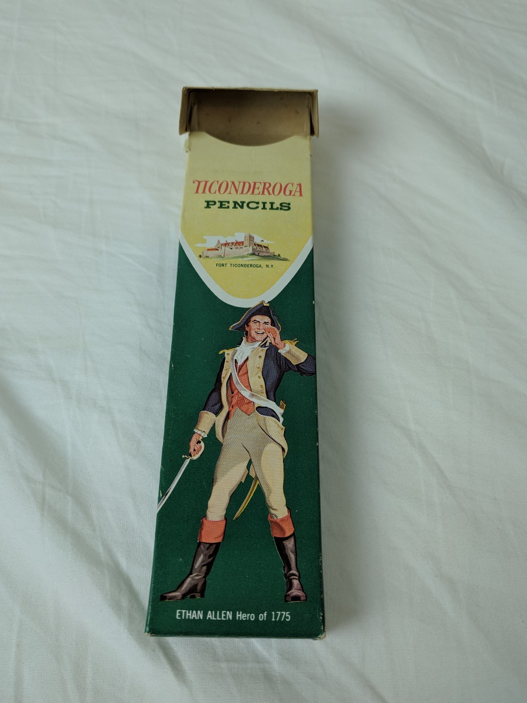 This listing is for a vintage box of Ticonderoga Pencils 1388, #3 Hard Vintage Box With 3 Unused Pencils. There are 3 pencils in this box! It is a very cool vintage box, it does show some wear. Please view all pictures and ask any questions prior to buying. Thanks for looking! Inventory # SA-L1-CC