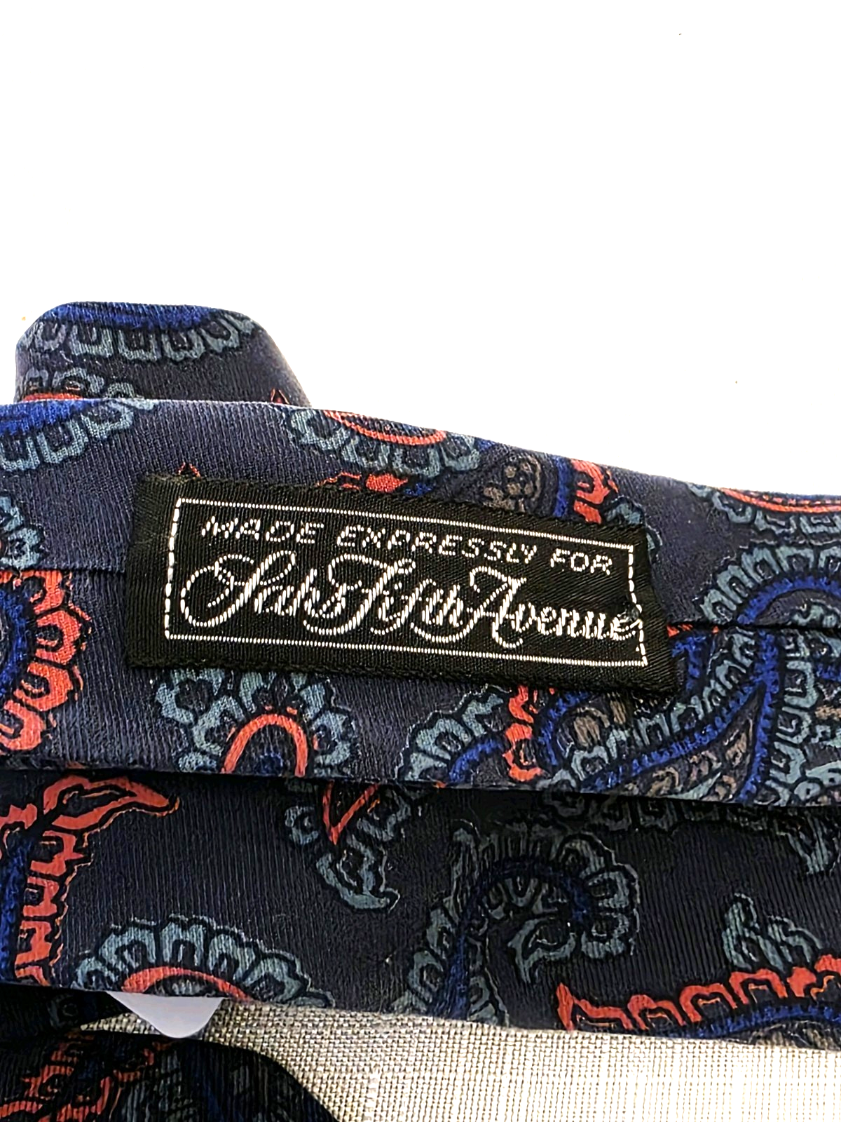 The product is a vintage tie by ETRO from Saks 5th Avenue, featuring a red, blue, and green paisley pattern on silk material. Made in Italy, this designer tie is of classic length (57"-60") and classic width, making it a versatile and stylish addition to any man's wardrobe. Perfect for those who appreciate unique, high-quality accessories, this tie adds a touch of sophistication and personality to any outfit. Combined shipping is available.