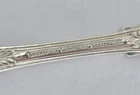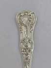 This vintage Tiffany & Co. sterling silver knife features an English king pattern and a flat handle spreader. It is a unique addition to any collection of flatware and silverware. The knife has a length of 5 3/4th" and is composed of .925 sterling silver. The monogram of the knife is F. This antique piece is perfect for those who appreciate the beauty and elegance of silverware. It is a must-have for collectors and enthusiasts alike. Add this exquisite piece to your collection today! This beautiful spoon is a true treasure for any collector or lover of silverware. Crafted by Tiffany & Co. in their classic English King pattern, this spoon is made of high-quality sterling silver and features a stunning bouillon design. Measuring 5 1/8th" in length, it is the perfect size for use or display. The spoon also features a monogram "F" and is part of the Tiffany Sterling Silverware collection. Ideal for those who appreciate antique silverware, this spoon is a timeless piece that will never go out of style. HT12034 Item As Is. All stones not identified unless clarified above. All items are pre-owned and pre-loved. Stones may show minor nicks and abrasions or small signs of wear. Diamonds are graded using GIA standards by GIA Graduates. Diamond and gemstone weight is estimated by formula. The metal is stamped or identified by acid testing and/or XRF alloy analyzer gun. All items shipped USPS First Class, Signature Required Items over $1000 ship overnight, Signature Required Please message with any questions. We are available Monday through Saturday 10am to 6pm.