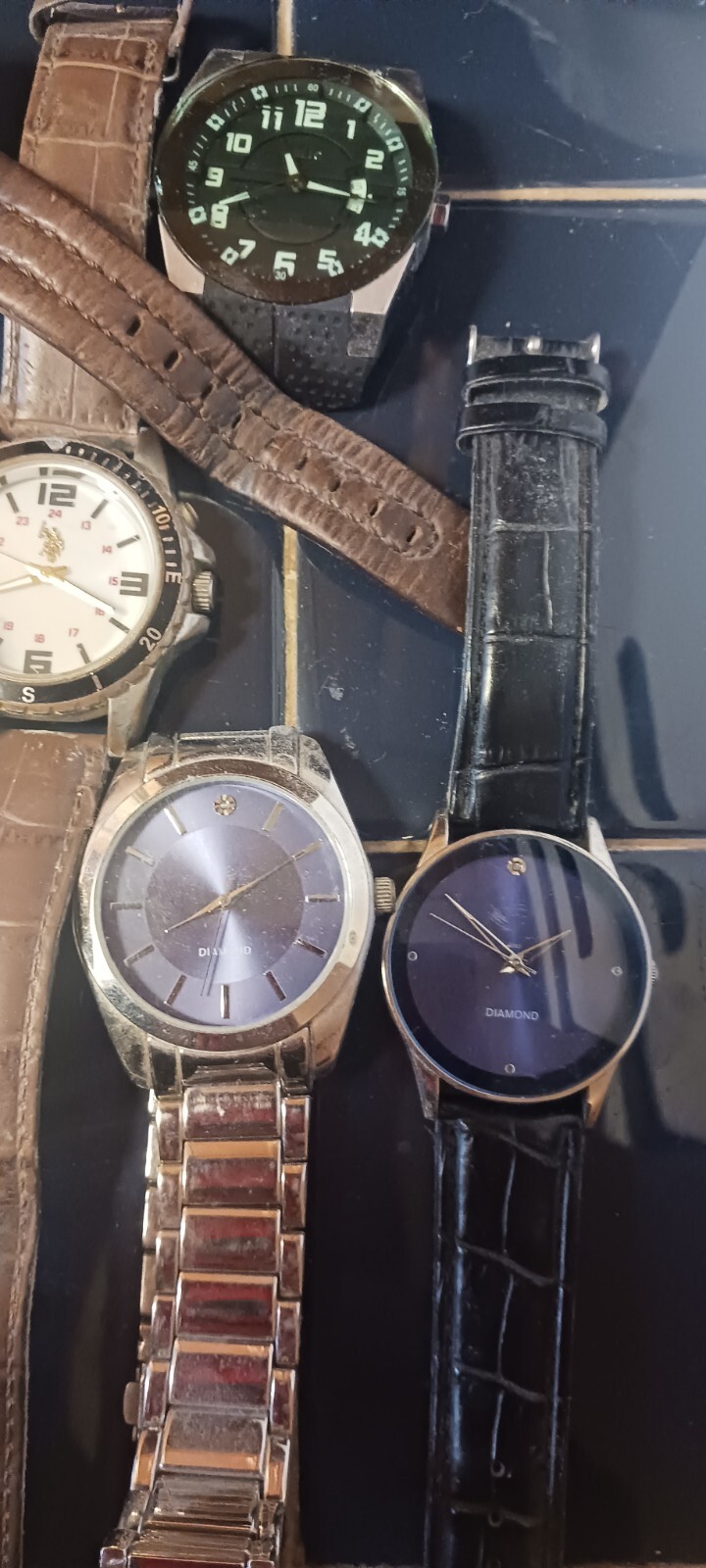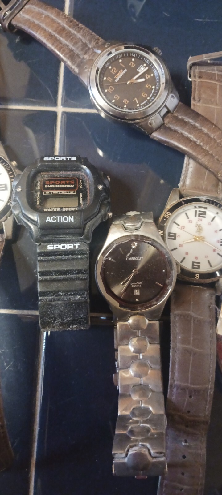 One Timex is running. The rest need batteries some may or may not run. Some need bands. All were my personal watches and were working before. Will throw in 2 other watches not running. As Is.