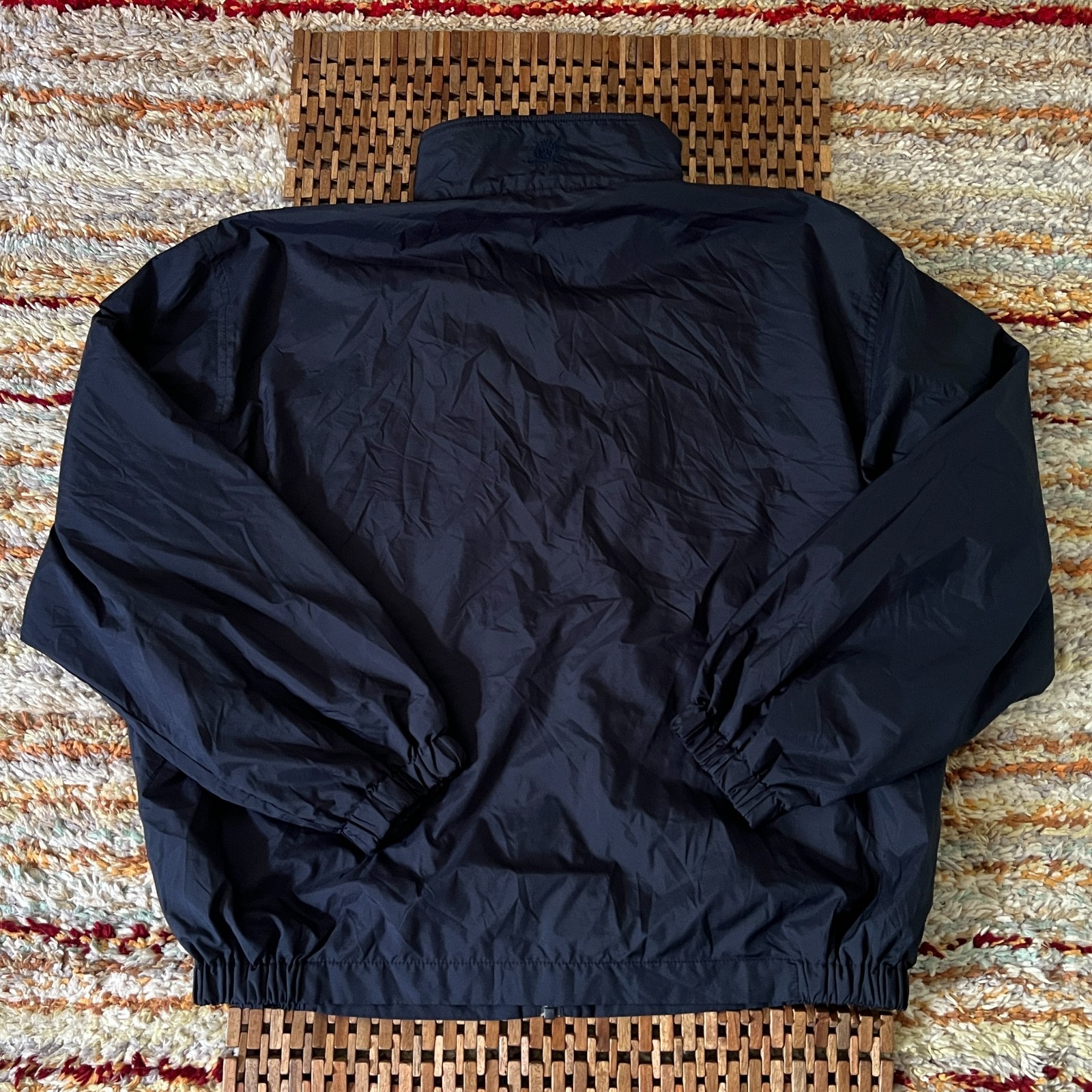 This Vintage Tommy Hilfiger Golf Full Zip Windbreaker Jacket in Blue is a stylish and practical choice for men size XL. Made from polyester with a softshell fabric type, this lightweight jacket with a full zip closure is perfect for travel and casual occasions during the winter, fall, and spring seasons. The jacket features the signature Tommy Hilfiger logo accents, making it a classic piece with a 90s theme. Great for golf enthusiasts, this windbreaker also has a mid-length cut and is machine washable for easy care.