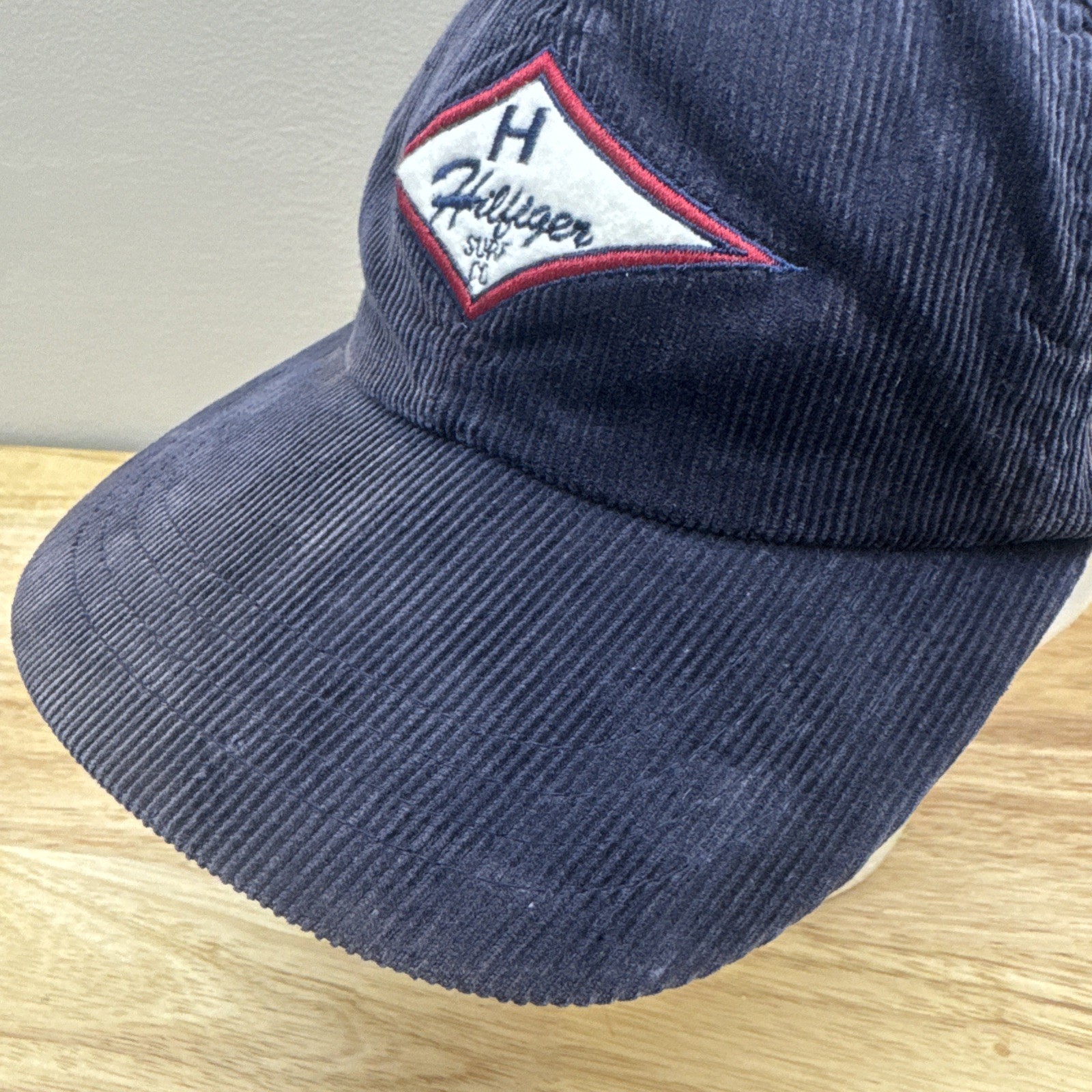 Vintage Tommy Hilfiger Surf Blue Corduroy Hat Embroidered Logo Leather Strapback. While there are signs of wear this is mostly in good condition. Discoloration along the front of the inner headband, the interior metal buckle button has patina, please see pictures.