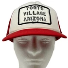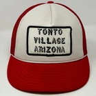 Vintage Tonto Village Arizona Patch Trucker Hat Baseball Cap 80s Red Roping Rope Cord Cording Mesh Snapback Five Panel A-Frame Will be shipped in a box. Condition: In gently used condition. No flaws noticed. Has been cleaned and sanitized. See photos.