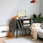 Wooden Record Player Stand with Vinyl Storage and Solid Wood Legs