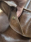 The Vintage Unbranded Leather Hanging Garment Bag is a true vintage piece made of soft leather in a rich brown color. This suit carrier/garment bag exudes a classic and timeless appeal, perfect for travelers looking to add a touch of sophistication to their journey. With its durable material and soft casing, this garment bag is designed to protect and carry your clothing with style and ease. Comes with over the shoulder strap, 4 pants; belt/tie hangers and 2 shirt; jacket hangers as well. In very good condition. No key for small lock.