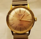 Avia 'Cadet' watch,Swiss made,mechanial,with gold coloured dial and gold tone stretch strap. A tiny part of some letters have come away on the dial.Watch otherwise is in lovely condition and fully working. Apologies for the high postage cost,this is because Royal Mail will only insure jewellery/watches valued over £50 if sent using special delivery. PLEASE CONTACT ME IF YOU WANT TO PURCHASE MORE THAN ONE ITEM. I ALWAYS COMBINE POSTAGE BUT EBAY KEEP STOPPING ME ADDING IT TO LISTINGS BECAUSE OF THE GLOBAL SHIPPING PROGRAMME!