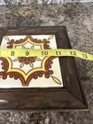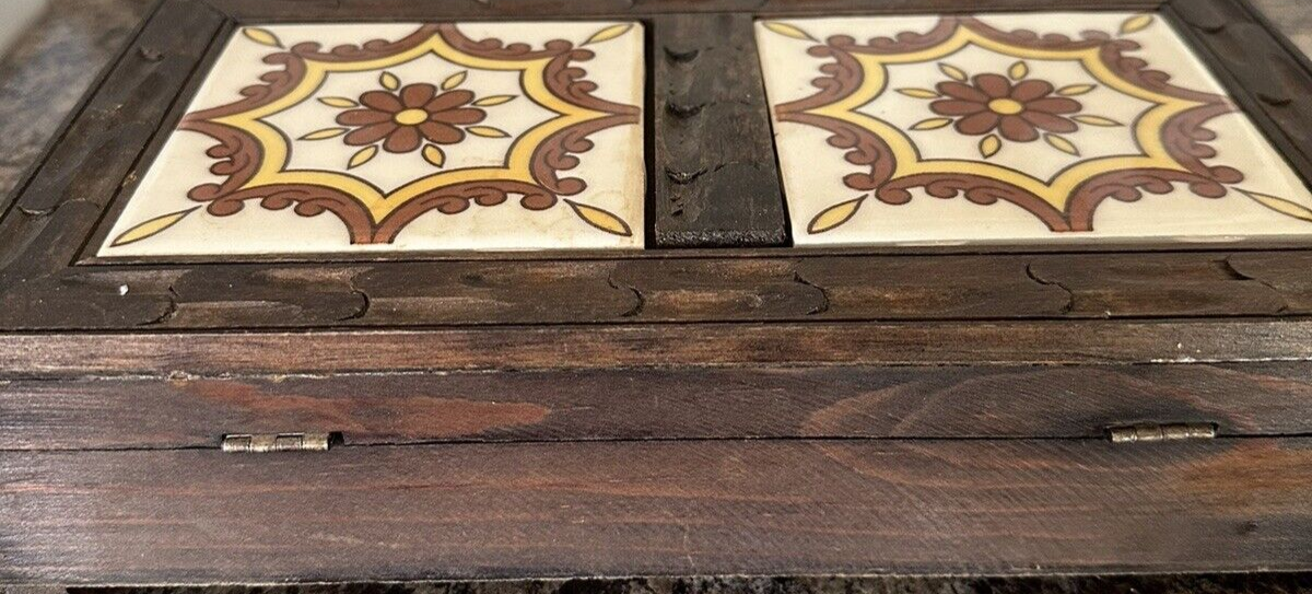 This jewelry box is a unique addition to any room. With intricate carvings and a colorful floral pattern, it is a beautiful piece that will catch the eye. The box is made of wood and has a stained finish, giving it an eclectic style that is perfect for all occasions. Measuring 12 inches in length, 6.5 inches in width, and 3 inches in height, this medium-sized box has plenty of space for jewelry and other small items. It comes with a lid and is unboxed, making it a great gift for adults who appreciate the beauty of handmade items. The box is easy to clean with a damp cloth and is an original piece from an unknown country of origin. Smoke free home! Questions, concerns, please feel free to reach out to me!
