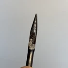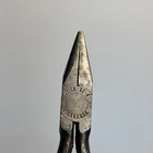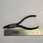 Vintage Utica model 22-4 needle nose pliers marked “Utica 22-4” and “Utica N.Y. U.S.A.” on the pivot. Overall length is approximately 4 inches. Forged steel construction with slim tapered jaws and integral wire cutter near the pivot. Black finished handles without grips. Condition Used vintage condition. Surface wear and patina consistent with age. Markings are visible. Jaws align properly. No cracks or repairs observed.