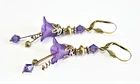 Vintage Victorian Style Purple Velvet and Antique Bronze Bell Flower Lucite Earrings These vintage look flower earrings are so pretty and delicate; really striking. The bold 6mm bicone crystal accents on top and bottom really make them sparkle! This classic look makes these a great bridal party gift or accessory, or a wonderful gift for any occasion. Or just for you ... Available in 20 colors. 2 inches long Lever back antique bronze ear wires Lead free/nickel free Available Colors: Emerald Green Siam Red Pale Pink Navy Blue Light Blue Royal Blue Denim Blue Aqua Blue Dark Prussian Blue Teal Chocolate Brown Peach Peridot Green Purple Lilac Fuchsia Violet Yellow Black White