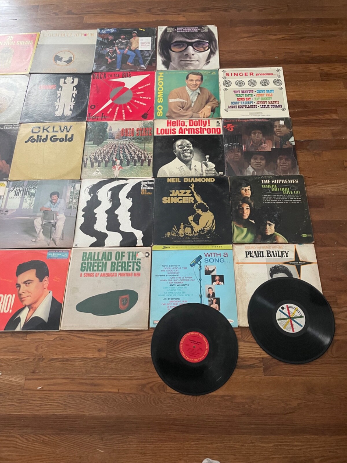 This collection of 34 vintage vinyl records features a variety of artists and genres to enhance any music lover's collection. The records are all in playable condition, and each one comes in its own sleeve for added protection.Whether you're a fan of classic rock, jazz, or anything in between, this collection has something for everyone.