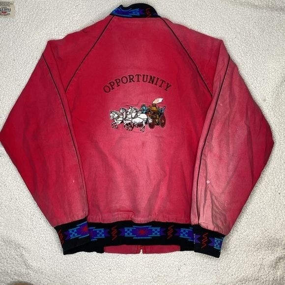 NO SIZE TAG: SEE MEASUREMENTS Faded, stains and some distressing Full zip closure 2 pockets Blanket lined Aztec design Chest and back embroidery Made in USA Length: 27” P2P: 23.5”