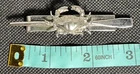 This vintage money clip is crafted from sterling silver and adorned with a detailed crab motif. Designed by Wells, this piece offers both elegance and functionality. Its lustrous finish and intricate design make it a sophisticated accessory for those who appreciate marine-themed motifs. • Sterling silver construction • Detailed crab motif • Durable and stylish • Vintage design • Brand: Wells Tarnishing and light surface scratches evident, typical for vintage sterling silver items. Total width = approximately 3 inches.