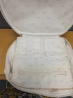 Vintage White Dior Beauty Makeup Bag/Cosmetic Pouch Travel Bag. There is a bit of discoloration on the top outside and the inside. Vintage used condition. Please examine pictures carefully prior to purchase and ask questions if you have any. : )
