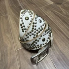 White Studded Leather Belt 42 Vintage Used Adjustable Casual Accessory Key Features ✔ This stylish vintage white leather belt features eye-catching studs, perfect for adding a unique accent to your outfit. The belt is designed with a distinctive surface that is not damaged but rather part of its aesthetic appeal. ✔ - Width: approximately 3.5 cm (Convert to inch: 1.38 inch) ✔ - Total length: 107 cm (Convert to inch: 42.13 inch) ✔ - Length from the buckle tip to the first hole: 81.5 cm (Convert to inch: 32.13 inch) ✔ - Length to the last hole: 96.5 cm (Convert to inch: 38.03 inch) ✔ - Length without the buckle: 104.5 cm (Convert to inch: 41.14 inch) ✔ - Length from the tip to the first hole: 78.5 cm (Convert to inch: 30.91 inch) Specifications Brand No Brand Country Japan Language Japan Additional Description Title Used Studded Belt White Item Descriptions Thank you for taking a look at the item we are listing. This item is a used item. If you have any questions or concerns about this item, please feel free to contact us. We also have many other items on ebay besides this item. It would be great if you could take a look at that as well. If you do not see the item you want in our listings, please contact us and we will do our best to find it for you. We will do our best to find the item you want. Please make sure you understand all of our policies, including our sales policy, before you buy. We are selling this item in accordance with ebay's policies. Please be sure to review ebay's policies before making a purchase Handling Time Handling Time : 10 business days Due to the ongoing global holiday season, there is a significant increase in the handling of packages by shipping companies. Therefore, it is possible that there may be delays in pickup, shipping, and during transit. Please make your purchase with an understanding of these potential delays. In the event of any delays, rest assured that we will investigate and take responsibility. Please buy with confidence. Message For You Thanks for taking a look at my products. We hope you will consider them. I am listing on ebay with my company. I am listing my products on ebay in Japan. I have only slight feedback. It may be making you uncomfortable. But don't worry. I will provide courteous and responsive service. We also have a variety of other products for sale. We hope you will take a look at those as well. If you are looking for a particular item that is not in my listing, please do not hesitate to contact me. I will look it for you. ※All of the products we sell are cleaned and disinfected during inspection. We hope you will consider purchasing our products. All of the products we sell are cleaned and disinfected during inspection. Please be sure to review and understand the policies listed below before making a purchase. If you have any questions, please contact us. There is an inquiry button at the top. Notice Because,the international air shipping forbid to ship liquid,powder and batteries, If you purchased goods containing such items, we will not be putting them packing. Please understand them before purchasing the product. INTERNATIONAL BUYERS Import duties, taxes, and fees are not included in the price or shipping charges of the items you purchase. You are responsible for payment of any import duties, taxes, and fees. If you are unsure of the price of import duties, taxes, and fees, please contact your country's customs office for confirmation. If you owe import duties, taxes, or fees, they will be charged to you by the shipping company. When we ship goods, we do not undervalue the declared value below the value of the goods. We also do not ship as gifts. These are strictly prohibited by eBay policy. Please refer to the following for more information. https://www.ebay.com/help/buying/shipping-delivery/changing-delivery-address-method/international-purchases-shipping?id=4057 There are also other ebay policies that buyers should review. Please be sure to abide by them before making a purchase. FEEDBACK POLICY We provide timely customer support to all purchasers. We will respond to your inquiry within 24 hours. Our working hours are from 10:00 to 20:00 Japan time. Once you have received your item, please make feedback for us as this will let us know that you have received your item. In case of damage, please be sure to take pictures of the following items and send them to us 1. Photograph of the entire item 2. Photograph of the damaged part 3. A photo of the condition of the cushioning material in the package 4. A photo of the condition of the cardboard box it arrived in SHIPPING POLICY Shipping methods are Japan Post, FedEx, and DHL. If you select "Economy Shipping from outside US" or "Economy International Shipping" at the time of purchase, your order will basically be shipped by Japan Post. All shipments are tracked. Please buy with confidence. Shipping by Fedex or DHL is the fastest shipping method available. This can be changed for an additional charge. Please select "Standard Shipping from Outside the U.S." or "International Standard Shipping" if you prefer. Shipments are usually made within 5-10 business days. The earliest we can ship is the day after the ship date, and in some areas it may take several days, but we try to get your order to you as soon as possible. A shipment control number or tracking number will be sent to the customer as soon as it is issued. We strictly adhere to package handling times. Estimated arrival time in Economy Asia: 2 to 3 weeks Oceania: 2 weeks North America: 2-3 weeks Middle East: 2-3 weeks Europe: 2-3 weeks *It may take longer than the estimated arrival date due to carrier and traffic conditions in each region. Due to global disruptions, we may not be able to ship to some areas. Subject to change on a daily basis. If we find after purchase that we are unable to ship, we will issue a full refund. PAYMENT POLICY We accept a variety of payment methods. Please use the payment method of