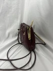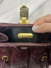 The cousin of the Fendi baguette. Vintage 90’s Fendi bag in fair condition. Burgundy/maroon lambskin quilted leather exterior with black silky satin interior. Gold-tone central snap lock closure. Structured bucket-style bag with crossbody straps. In fair vintage condition with small staining and wear. Authenticated.