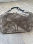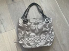 Coach Multicolor Logo Pattern Tote Bag Blue Leather Handles Silver Hardware Zip