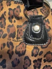 The Vintage Y2K Liz Claiborne leopard Small Shoulder Bag is a stylish and unique accessory perfect for travel, casual outings, or business meetings. This slouchy bag features a black and brown exterior with a trendy plaid pattern, silver hardware accents, and a snap closure. The brown faux leather double handles add a touch of charm, and the teal fabric lining provides a pop of color. This retro-inspired bag from the 90s exudes a classic and preppy style, making it a fashionable choice for any woman looking to add a vintage flair to their outfit. So cute! Mob wife, y2k, leopard print is a neutral glam never used or worn!