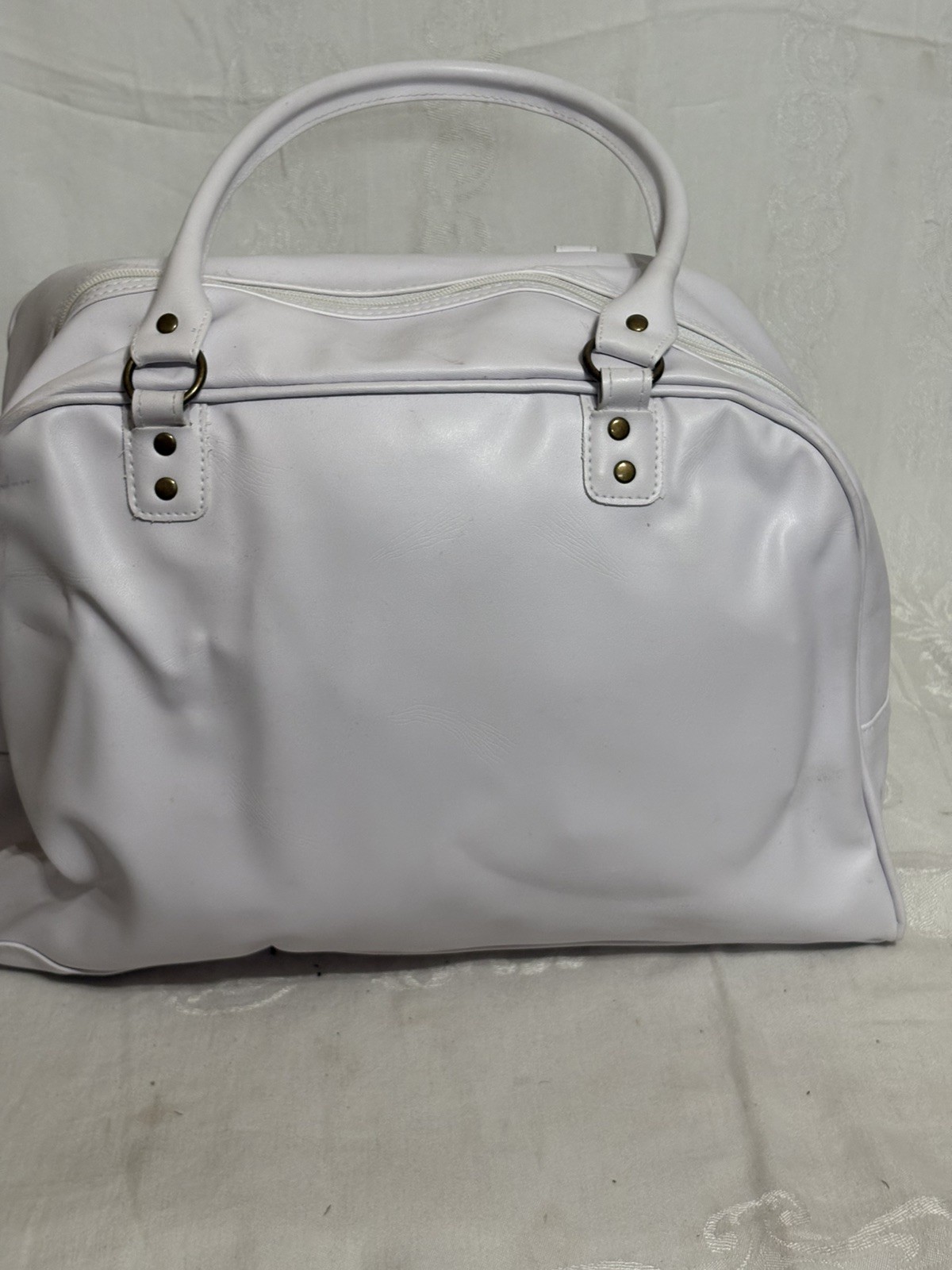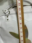 This Vintage Y2K Playboy Bunny White & Gold Mini Bowler Bag Purse Handbag is a stylish and playful accessory for women. Made of faux leather and vinyl with a matte finish, this small shoulder bag features a classic bunny logo pattern in pink. The white and gold hardware accents and double white handles add a touch of glam to this 90s-themed handbag. Perfect for travel, parties, or casual outings, this purse is lined with fabric and has a zip closure for convenience. The iconic Playboy brand makes this piece a unique and nostalgic addition to any wardrobe.