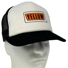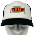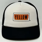 Yellow Corporation Trucker Hat Vintage 90s Black Trucking Transportation Freight Transit YoungAn Mesh Snapback Made In USA Baseball Cap Five Panel A-Frame Will be shipped in a box. Condition: Has some discoloration on the inside foam. No other flaws noticed. Has been cleaned and sanitized. See photos.