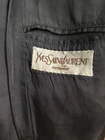 Vintage Yves Saint Laurent navy blue pinstriped single breasted men's blazer with three front pockets and two inside pockets. No size tag. Shoulder to Shoulder: 19", armpit to armpit: 21", chest: 40", waist: 41.5", length shoulder to hem: 30". 100% wool. Made in France. Rank S.