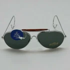 Vintage aviator sunglasses green tint round ear pieces item# SG001 silver colored metal frames 100% UV protection. Temple Length 140mm overall frame width 135mm frame height 56mm lens width 63mm distance between lenses at bridge width 15mm