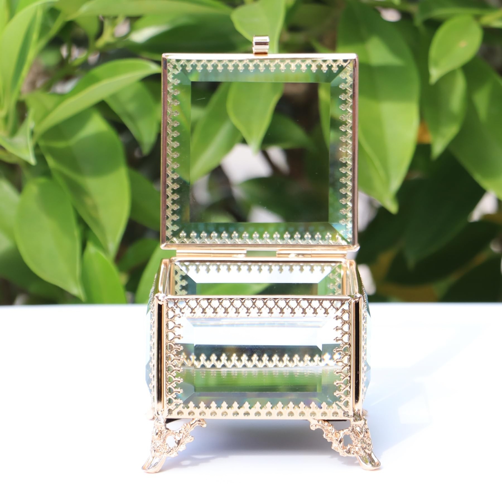 This vintage glass jewelry box is absolutely stunning! The delicate lace detailing and golden finish give it a luxurious, timeless look. Perfect for storing rings, bracelets, and small accessories—it keeps everything organized while adding elegance to my dresser. The size is just right, not too bulky but spacious enough. Feels sturdy and well-made. Love it!