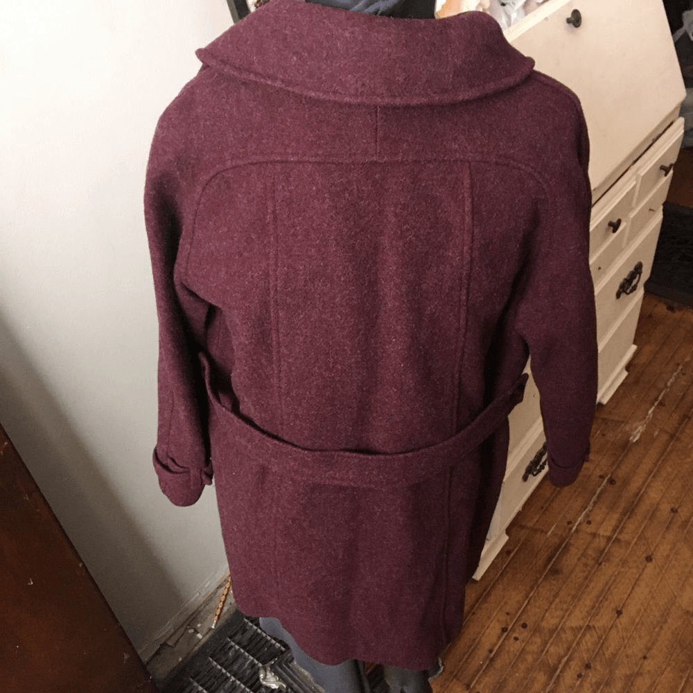 Grandma maroon wool coat with wool lining. In good condition. Approximately 22 inches from armpit to armpit, 34 inches long. From a pet and smoke free house. Happy to bundle! warm, timeless, cozy, quality, fashionable, sustainable, versatile, durable, luxurious, affordable, stylish, long, winter, trendy, classic, heavy, comfortable
