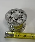 Keep your cherished jewelry organized in this vintage silver-plated jewelry box. The round design, adorned with a delicate floral pattern, exudes a timeless elegance that complements any dressing table or vanity. Ideal for storing your precious items on any occasion, this small trinket container is both functional and stylish. The box features a silver finish that adds a touch of romance to your keepsakes. Designed for teens and adults alike, this unbranded piece, part of the Keepsake Boxes collection, ensures a classic and tasteful storage solution for your jewelry without the clutter.