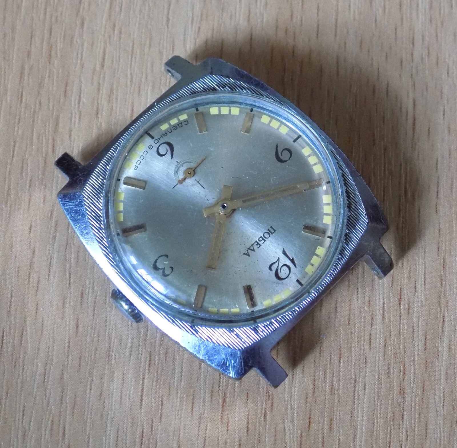 Pobeda watch is a historic timepiece with a strong connection to Soviet (Russian) heritage and history. This Pobeda vintage wrist watch was fully serviced, tested, and it keeps good time. USSR Pobeda watches for men have a distinct design and a story that reflects their role in significant events. Pobeda means Victory in Russian. Case of this Pobeda vintage watch is made of stainless steel. Description of this vintage Pobeda watch for men: - Number of Jewels: 15; - Mechanical watch, wind up; - Lug Width: 18 mm ; Case Size: 35 mm ; - Case Material: Brass, stainless steel; - Case Color: Multicolor; - Original Soviet ( USSR ) vintage watch Pobeda. Such vintage watch will be perfect gift for him. You can use this old Pobeda watch as your everyday watch or add to your collection.