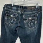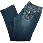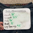 Waist: 38" Inseam: 32.5" Hip: 46" Rise: 10" Leg Opening: 9.5" Tag Size: 34 Item is in good used condition. Look at photos to see the condition. All, if any, flaws have been pictured. See the last photo for measurements. The waist and hip measurements are measured flat and then multiplied by 2 to get the full measurement around. Please know which measurements fit you prior to purchasing, and don’t just rely on the size tag. Feel free to ask any questions! ***Item is cross posted on several platforms***