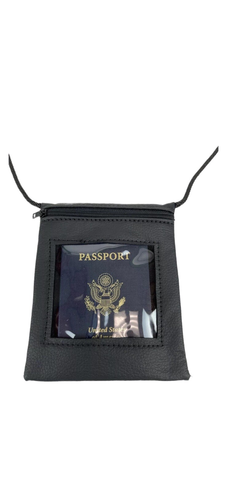 Vinyl Passport Holder with Lanyard Travel Wallet Card Case