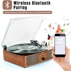 Return Policy Fast Delivery Trusted seller Vinyl Record Player Bluetooth Vintage 3-Speed Portable Turntables with Built-in Speakers, Belt-Driven LP Player Support USB Recording AUX-in RCA Line Out Product Description 【VINYL PLAYER】Turntables for vinyl records. Record players for vinyl with speakers which bulit in. Three-speed Turntable (33, 45, 78 RPM) plays all of your 7" 10" 12" vinyl records. And 45RPM adapter included on turntable , no problem for playing any of your favourite vinyl records or albums. It is great ideal for vinyl lovers. 【Bluetooth Input & Built-in Speakers】Using Bluetooth wireless technology, play music from your mobile phone, MP3, tablet, or other Bluetooth-enabled audio devices, and transmit audio through the two built-in stereo speakers of the turntable, providing you with high-quality sound and enjoy wireless sound effects. 【TURNTABLES & ACCESSORIES】Support AUX input & RCA output. T is one AUX input cable included in package. Use Aux input cable to play the music of CD player,Smartphone,Digital media player, or other audio sources wiredly. And for better or louder sound, hook up your external speakers via RCA output cable which included in package. What's more, 3.5mm Music Headphone Jack for enjoying your time with headphone. 【VINTAGE RECORD PLAYER】It creates a warm atmosp when family gatherings. When you are alone, it can help you relax. Even if you don't use it, it can be one of the home's premium decorations. As a gift, it also allows the recipient to feel your heart.Go back to Vintage Vinyl Turntables. Great for Home Decoration & Entertainment. Let's enjoy the warm analogue sound of your music on vinyl. 【USB Player/AUX-in/RCA Output】Connect to USB to get music playback directly, easy to use. Transmit the audio of various electronic audio devices including MP3 through the AUX IN interface, and connect external speakers through the RCA output to get a louder sound. A variety of playback methods provide you with ideal options. Shipping Returns Payment Shipping Shipping is FREE to all addresses other than APO/PO boxes in the lower 48 states. All our stock ships from US-based warehouses. Shipped via USPS or UPS (depending on location and package weight) Unless stated otherwise, all orders will ship within 24-72 hours of your payment being processed. Check our feedback to see the great reviews of FAST shipping we offer. Returns Seller does not accept returns Payment We currently accept payment via eBay managed payments only. Once payment is cleared, we will dispatch your shipment within 1-3 business days. Please refer to the "Shipping" tab for more information regarding shipping speed to your destination.