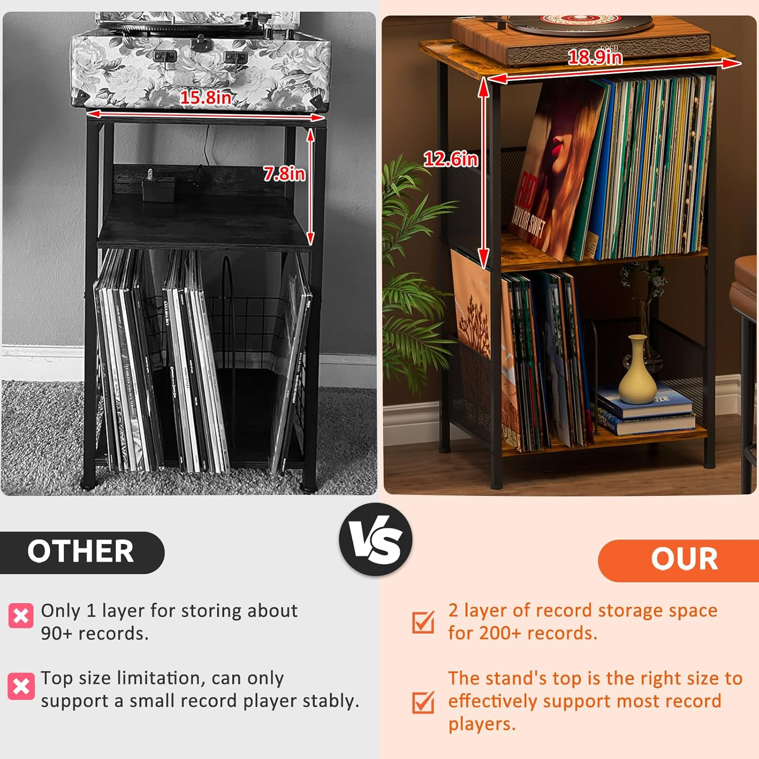 Store New Arrivals Add to Favorite View Feedback Contact Record Player Stand up to 200 Albums, Vinyl Storage Table with Extended Wooden Desktop, Record Player Holder for Albums, Vinyl Stand End Table Storage Rack for Bedroom & Living Room Description Item model number WH-BJ-07-BZJ-HLJ-US Style Retro Country of Origin China Room Type Living Room, Bedroom Is Customizable No Assembly Required No Product Dimensions 11.4"D x 16.5"W x 28.7"H Material Wood, Metal Finish Type Powder Coated (Matte) Indoor/Outdoor Usage Indoor Batteries Required? No Item Weight 14.45 pounds Finish Powder Coated (Matte) Number of Shelves 2 Special Features Adjustable Shelves & Built-in Organization Aids Special Feature Adjustable Shelves & Built-in Organization Aids Part Number WH-BJ-07-BZJ-HLJ-US Mounting Type Floor Mount Shelf Type Tiered Shelf Color Black Shape Rectangular Recommended Uses For Product Vinyl Records, Media, Furniture Included Components Assembly Guide đ¶ă2-Tier Record StorageăThis record stand features two tiers for record storing, offering ample space to store up to 200 vinyl records. Its dimensions of 16.5" L x 11.4" W x 28.7" H make it the perfect size for organizing your vinyl stand. It provides plenty of room for your records, albums, and CDs and easily find what you want. đ¶ăExtended Wooden DesktopăThe record holder features a wooden desktop measuring 18.9" L x 13.7" W. Providing enough space to hold most types of record players. You can easily place your record player on top and enjoy your favorite music. đ¶ă4 Adjustable Feet & 2 M-Shaped DividersăThis vinyl record player stand is equipped with 4 adjustable feet, ensuring outstanding stability and significantly reducing any wobbling or instability. Additionally, the record rack includes 2 detachable M-shaped dividers which can be installed on either the top or bottom tier to help organize and easily access your vinyl records. đ¶ăMultiple-Scene UseăThis multifunctional vinyl record holder is perfect for various indoor spaces. Its sleek design and retro style make it suitable as a vinyl record display table, turntable stand, also as a nightstand and record table in the living room or bedroom. đ¶ăSturdy ConstructionăThe record player table is crafted from high-quality wood and durable metal, ensuring excellent load-bearing capacity. With a solid and stable design, this black side table is built to last. The iron-wood combination design and industrial style make it suitable for any scene. Product Description Mid- Century Vinyl Player Stand With the combination of unique design and mid century style. The turntable stand retains the vintage wood grain without losing the modern pop of style. Multifunctional Modern Vinyl Record Table Itâs not just a record shelf â it also serves as a nightstand, corner table, or side table. You can place it in your living room, bedroom, or office for versatile functionality. Whether you're enjoying music alone or with friends and family, this vinyl shelf will enhance your life with more beautiful musical moments! Large Capacity Record Rack The top and bottom shelves of the record rack can store and hold over 200 records in total. The top wooden shelf of the vinyl table measures 18.9" L x 13.7" W, making it compatible with most record players. ABOUT US We offer the best prices around on high quality products. Our E-store includes media such as books, movies, music and games while offering electronics, toys, sporting apparel, clothing, tools, general home, garden items and more. SHIPPING We are always working hard to ensure your package arrives as soon as possible. Please understand that some factors like weather, high postal traffic, and the performance of shipping companies are outside of our control. We offer free shipping to the lower 48 states and ship within 2 business days of payment, usually sooner. We do not accept P.O. Boxes. Please provide a physical address. For shipping outside of the continental USA, we only use eBay's Global Shipping Program.The item is shipped to KY and then sent to the rest of the world. International customers are responsible for all duties and taxes. Continue to check out in order to calculate costs for shipping the item to your country. Messages regarding eBay's Global Shipping Program MUST be directed at eBay EXCLUSIVELY. RETURNS We offer a 30-Day Return Policy on items which you are not completely satisfied with. You have the option for a full-refund or an exchange of the item. No returns are available on items shipped outside of the USA. PAYMENT We accept PayPal. CONTACT US This page content is yet to come Please ad us to your favorite seller and visit again later Thank You CUSTOMER SATISFACTION We try our very best to make sure every customer is completely satisfied. If there's a problem, message us! We're happy to help.