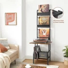 Vinyl Record Player Stand with Storage in Black & Brown Wood Finish