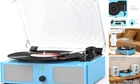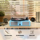 Return Policy Fast Delivery Trusted seller Vinyl Record Player with Build in Speakers Vintage Portable Turntable Supports Bluetooth Receiver USB Input,AUX Input,RCA Line Out,3 Speed and Headphone Jack Blue Product Description 【Built in Speakers & RCA Output for External Speakers】Builds in stereo speakers with advanced tuning technology, the vinyl record player provides you great sound.With RCA jacks,you can connect this record player with your own active speakers;3.5mm AUX input is for single-way audio device 【Bluetooth Input&USB Input】The Record Player supports Bluetooth wireless technology,allows you to elegantly listen to your music in your phone.Note:It only supports Bluetooth input,not supports Bluetooth output.Use USB function to directly play music 【 3 Speed &3 Sizes Record】The record player with speakers supports 3 listening speed (33-1/3, 45 and 78 RPM) and 3 sizes of record (7'', 10'' and 12''), enjoy your relaxing time with this LP turntable 【Vintage & Fashion Combination】The record player is made of vintage wooden,combined with modern fashion technology, allows you enjoy retro music by vinyl records or digital music with wireless tech.Removable dust cover keeps your record player clean and new 【Belt-driven Shock Absorption&Gift】Turntable base equipped with spring and belt-driven design greatly absorb the shock, provide you quality and smooth music.Perfect gift for families, lovers and friends Shipping Returns Payment Shipping Shipping is FREE to all addresses other than APO/PO boxes in the lower 48 states. All our stock ships from US-based warehouses. Shipped via USPS or UPS (depending on location and package weight) Unless stated otherwise, all orders will ship within 24-72 hours of your payment being processed. Check our feedback to see the great reviews of FAST shipping we offer. Returns Seller does not accept returns Payment We currently accept payment via eBay managed payments only. Once payment is cleared, we will dispatch your shipment within 1-3 business days. Please refer to the "Shipping" tab for more information regarding shipping speed to your destination.