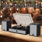 vintage record player with external speakers, 3 speeds turntable for vinyl records with dual speakers, bluetooth input, auto stop, rca out and aux in vinyl record player with dual external speakers, vintage 3-speed turntable with stereo speakers support digital audio sound vinyl record player turntable with speakers bluetooth vintage retro old turntables turntable records players lp sound music wireless antique stereo system set bookshelfwood white 33 45 78 record player and speakers 【Vintage Record Player with Speakers】 - Equipped with a pair of separated speakers, easy to set up and gives you full and dynamic vinyl audio sound via the stereo speakers. Integrated RCA output allows connection to your own externally-powered speakers. It is a complete vinyl playback system for many occasions, bringing a better music experience to your living room, apartment or your party. 【3 Speeds Turntable with Speakers】 - Removable protective dust cover and auto-stop function supports all 7", 10"& 12" records with switchable 33⅓ 45, 78 RPM speed settings, it provides you with the flexibility to enjoy all kinds of vinyl records. 【Wireless Bluetooth Music Input】 - Wireless Turntable with speaker lets you can play analogue vinyl records or stream digital music wirelessly from your phone, listen to the old-school vibe of the wooden speaker housings and turntable base. 【Belt-driven Turntable & Auto Stop】- The dust cover keeps your turntable clean and looks sleek. Auto-stop setting makes it possible to stop automatically when it reaches the end of the record, preventing damage to your records. 【Retro Vinyl Record Player】-Turntable with speakers is powerful enough to a fill a large room, it also features a vintage mid-century aesthetic, adding a touch of retro vibe to any room.Two bookshelf speakers not only works as capable music station but offers multiple placement options as turntable base or record shelf.