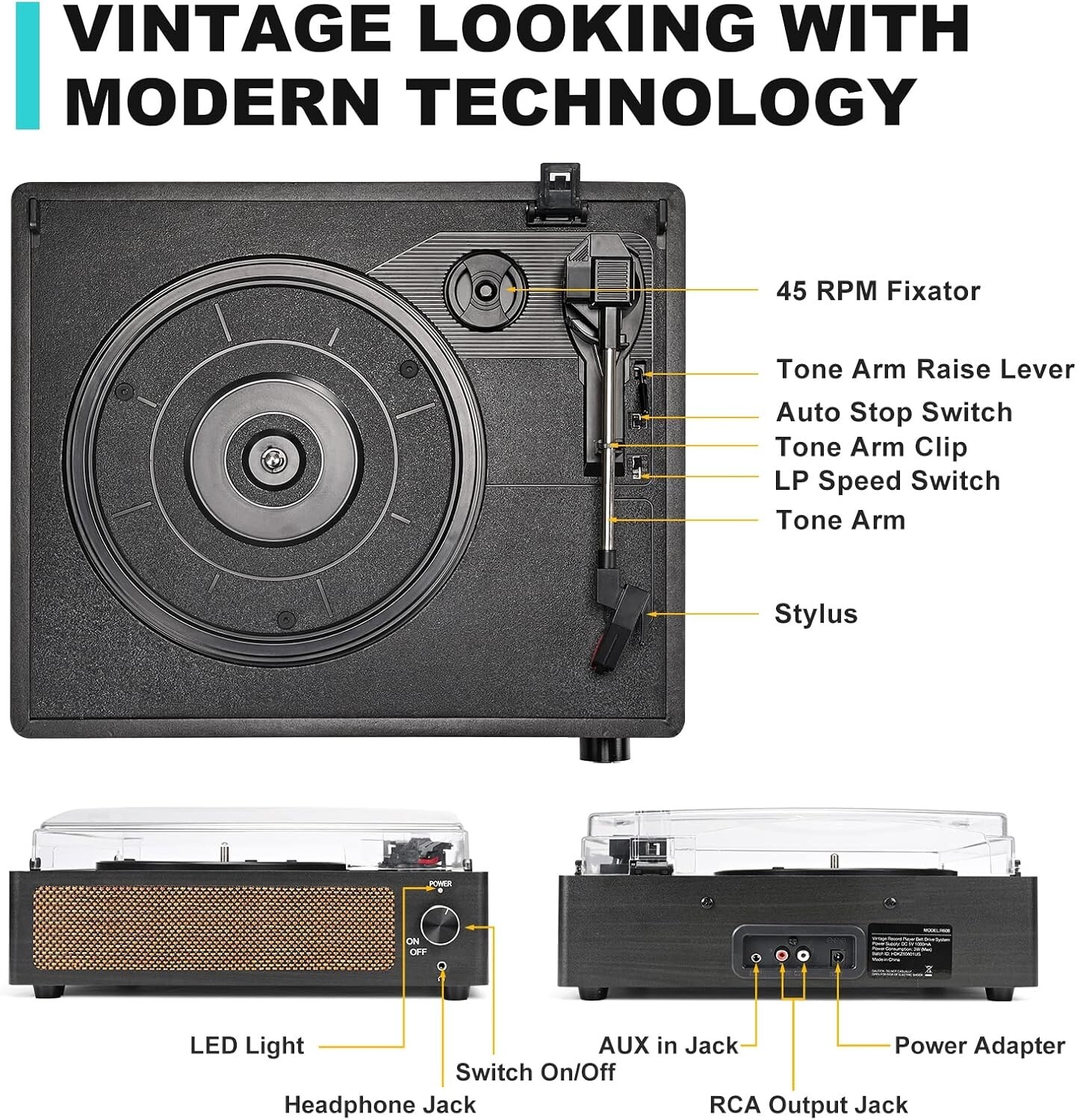 【Vinyl Record Player】Bluetooth input, RCA line output and headphone jack, 2 built-in stereo speakers. Bluetooth wireless technology, elegantly listen to music from smart devices. The headphone output jack allows you to enjoy your time with headphones. If you have your favorite external speakers, please connect the external speakers via RCA cables 【Record Player】Easy to use, simple to set up and operate. Perfect for vinyl record lovers. The three-speed turntable (33, 45, 78 RPM) plays all your 7-inch 10-inch 12-inch vinyl records. The auto-stop function Ships out Fast, Brand new item