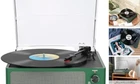Return Policy Fast Delivery Trusted seller Vinyl Record Players Turntable with Speakers Wireless Receiver 3 Speed RPM LP Vinyl Player Belt-Driven Phonograph Headphone AUX RCA Auto Stop Turn Table for Vinyls Record Collectors Grass Green Product Description NEW SLEEK RECORD PLAYER - Sleek and new fashion style, easy to use for beginner, simple setup and operation. Great ideal for vinyl lovers. Three-speed Turntable (33, 45, 78 RPM) plays all of your 7" 10" 12" vinyl records. Easily play all your record collections BT WIRELESS TURNTABLE WITH SPEAKERS - Built-in BT wireless receiver & 2 stereo speakers, it can play vinyl records to get back to vinyl time and atmosp and play all your favorite music at any time via a wireless connection BELT-DRIVEN ANTI-VIBRATION SYSTEM - The turntable base is equipped with a spring and belt-driven design to provide shock absorption and improve sound quality. An easily removable dust cover protects your vinyl records from damage PORTABLE VINYL PLAYER AND VERSATILE - Dynamic full range stereo speaker provide sound for daily leisure listening. Don't worry if you don't have extra speakers. If you don't use it, it can be one of the home's premium decorations ALL-IN-1 VINYL RECORD PLAYER WITH SPEAKERS - Built in stereo speakers,with Bluetooth wireless technology, elegantly listen to the music from your smart phone. Use Aux cable input to directly play the music. Or enjoy your time with headphone. For better or louder sound, connect external speaker via RCA cable Shipping Returns Payment Shipping Shipping is FREE to all addresses other than APO/PO boxes in the lower 48 states. All our stock ships from US-based warehouses. Shipped via USPS or UPS (depending on location and package weight) Unless stated otherwise, all orders will ship within 24-72 hours of your payment being processed. Check our feedback to see the great reviews of FAST shipping we offer. Returns Seller does not accept returns Payment We currently accept payment via eBay managed payments only. Once payment is cleared, we will dispatch your shipment within 1-3 business days. Please refer to the "Shipping" tab for more information regarding shipping speed to your destination.