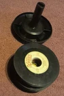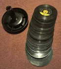 Vinyl records 45's lot (41), has record holder with green lid, fair condition