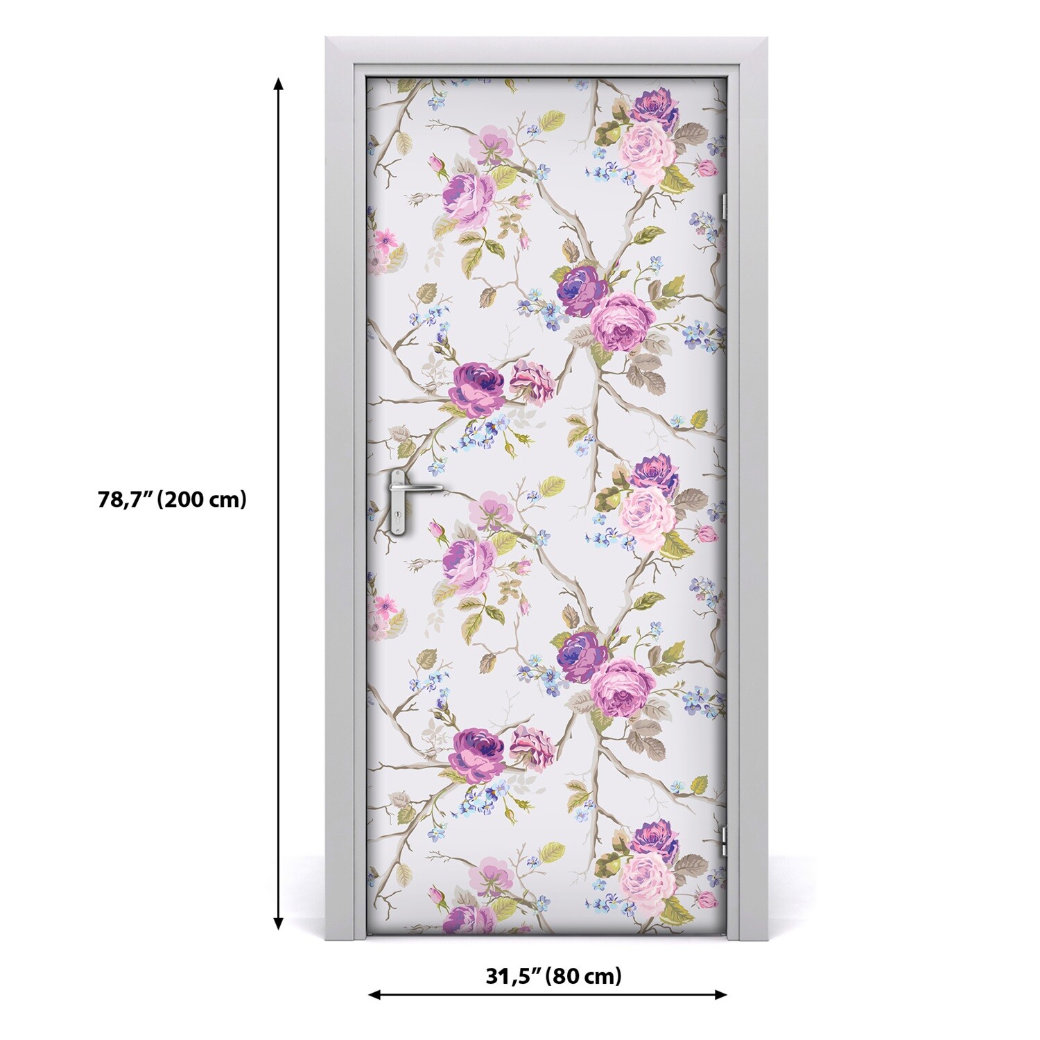 Dark Vintage Floral Bubble Free dark Door Decal Rose Mural Wall Covering
