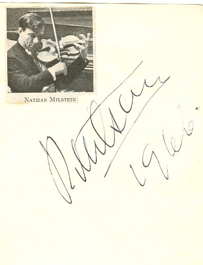 This is a marker-signed record album by violinist Nathan Milstein. This was his last recording for RCA. The album was acquired at an estate sale in Costa Mesa, CA. The signature appears to me to be authentic; I have included a photo of Milstein’s known signature. The record appears to be in Very Good condition with only a couple minor or superficial marks. It retains a high glossy finish. It is untested. Nathan Mironovich Milstein (January 13, 1904 – December 21, 1992) was a Russian-born American virtuoso violinist. Widely considered one of the finest violinists of the 20th century, Milstein was known for his interpretations of Bach's solo violin works and for works from the Romantic period. He was also known for his long career: he performed at a high level into his mid-80s, retiring only after suffering a broken hand. In 1929, Milstein made his American debut with Leopold Stokowski and the Philadelphia Orchestra. He eventually settled in New York, gaining American citizenship in 1942. He toured repeatedly throughout Europe, maintaining residences in London and Paris.