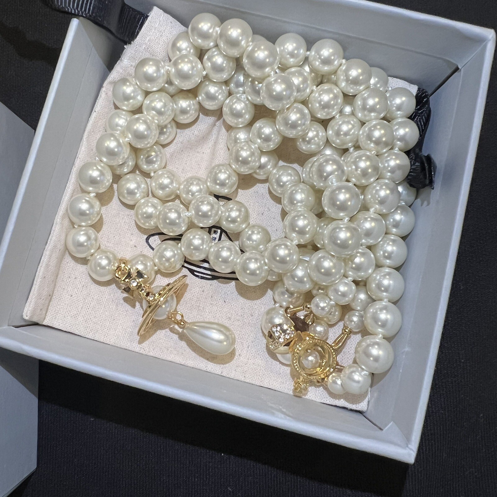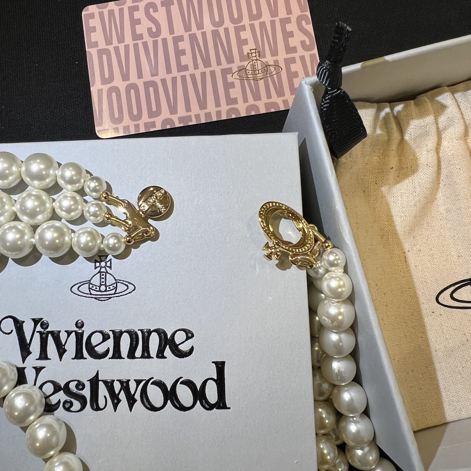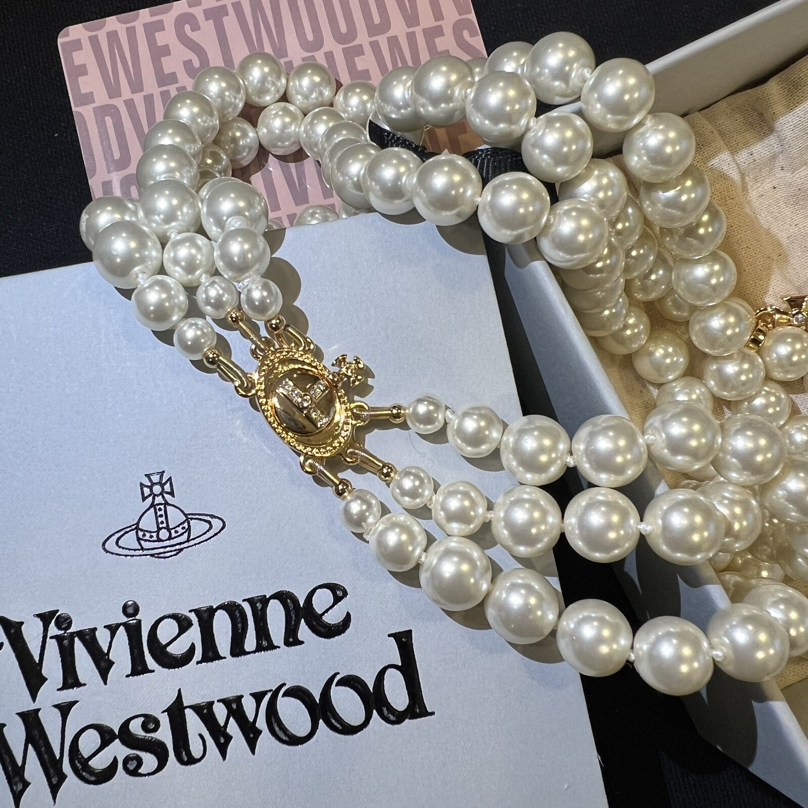 Vivienne Westwood Nana Three Row Pearl Choker Gold Tone. Dimensions: the inside layer of the necklace is around 38cm Includes dust bag, card and box