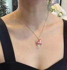 HomeVivienne Westwood Hot Pink Heart Safety Pin Pendant Necklace 282