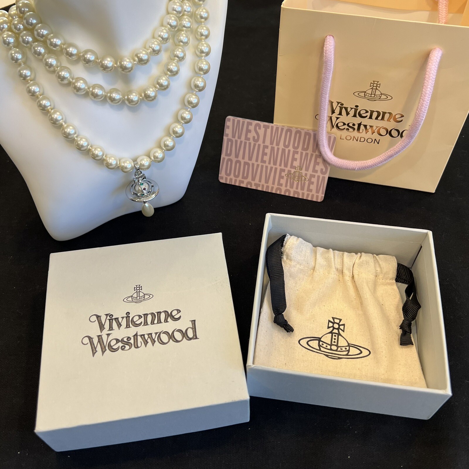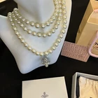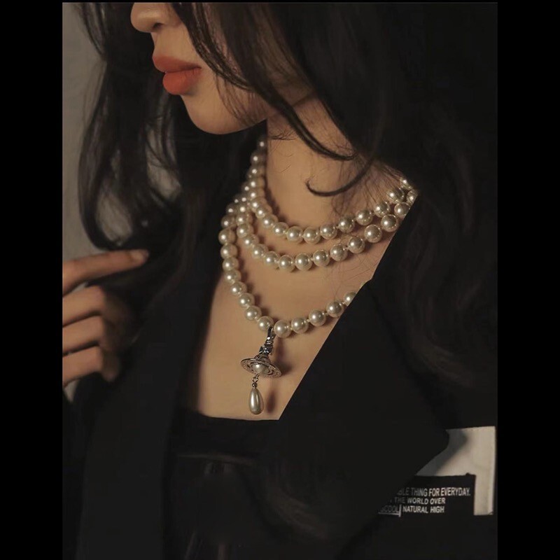 Vivienne Westwood Nana Three Row Pearl Choker Silver Tone Dimensions: the inside layer of the necklace is around 38cm Includes dust bag, card and box