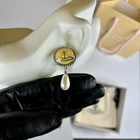 Vivienne Westwood Nana Drop Pearl Earrings with Orb Saturn Silver Tone New In Box