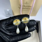 Vivienne Westwood Baroque Pearl Victoria Saturn Drop Earrings New In Box