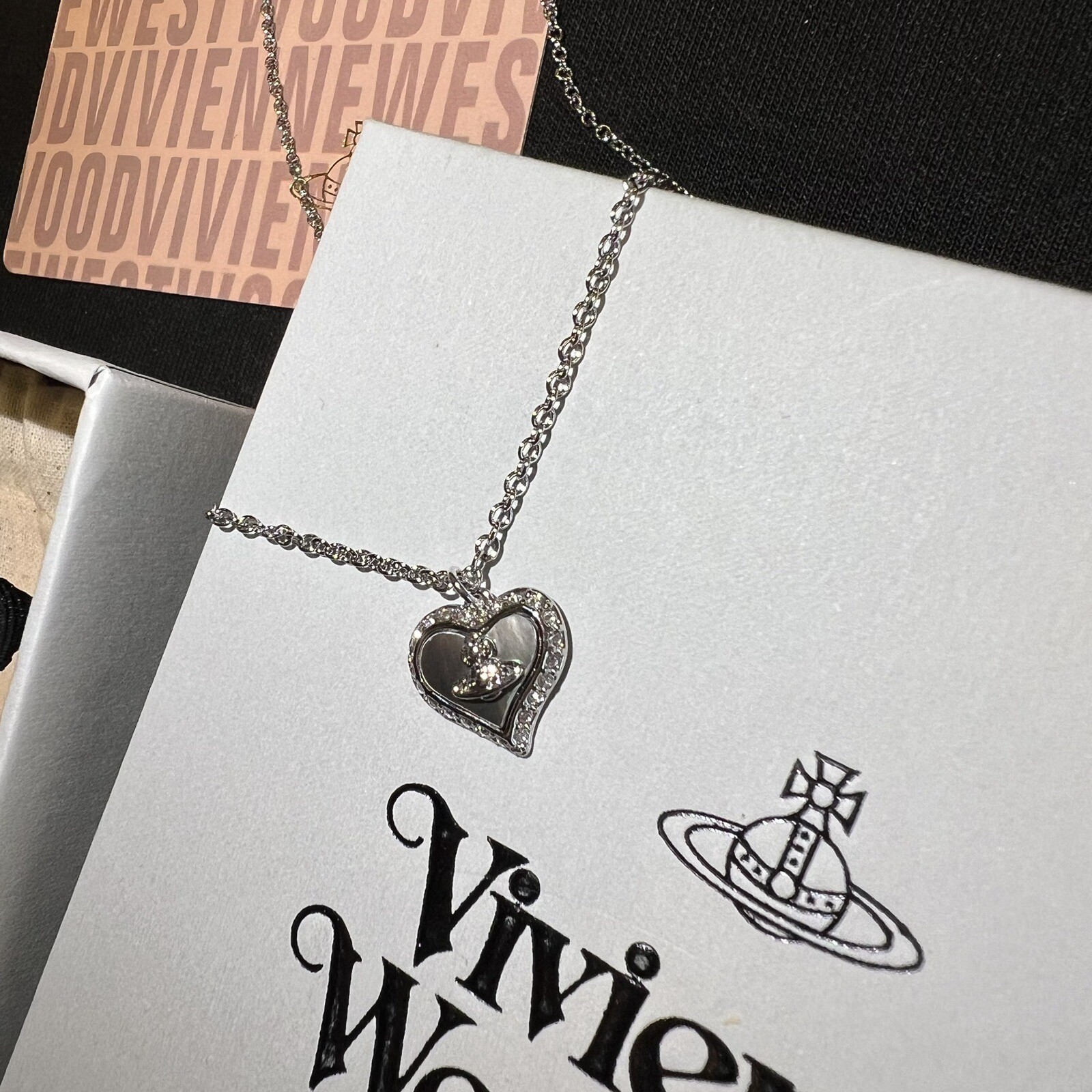Vivienne Westwood Nana Mother Pearl Heart Silver Tone Necklace 34cm