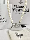 Vivienne Westwood Silver White Pearl Necklace Choker Chain with Bag UK