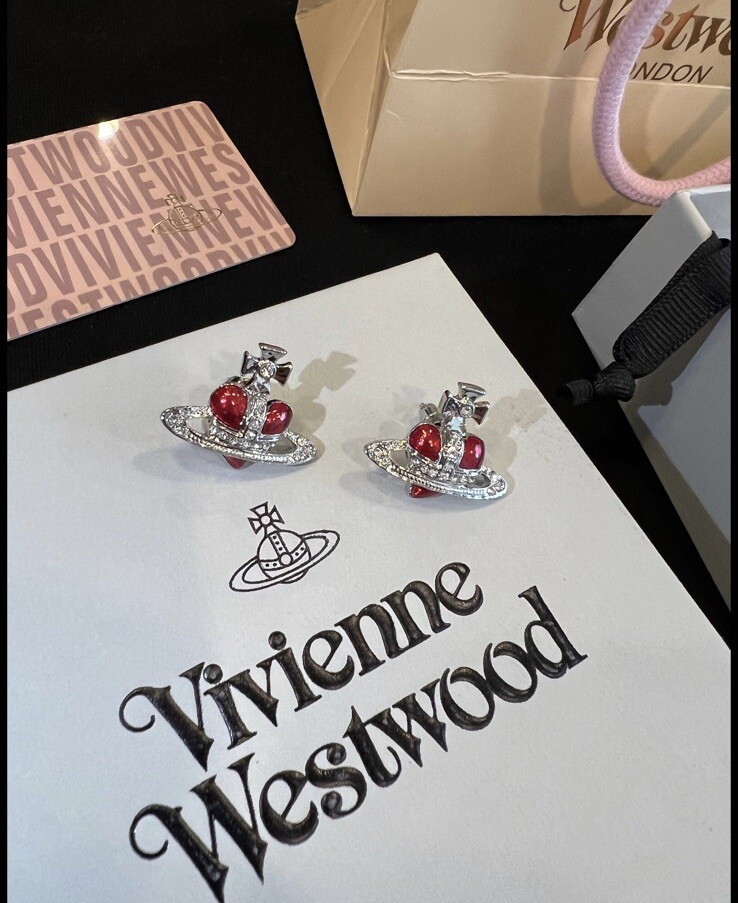 HomeVivienne Westwood red heart orb stud earrings with gift box B2