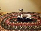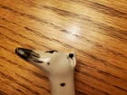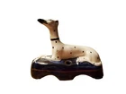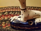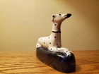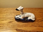 In the past ornate inkwells were a recognizable sign of personality, affluence, and status Add a touch of elegance and bygone days to your collection with this beautiful porcelain figurine. Made by Staffordshire Ware in Kent, England, this piece features an aristocratic Dalmatian / Whippet Dog resting on a cobalt blue base. Perfect for animal lovers, this figurine is part of the "Animals" collection and would make a great addition to any home decor. The intricate details of the design showcase the fine craftsmanship of Staffordshire Ware. Don't miss out on the opportunity to own this wonderful piece of history. Porcelain has 2 sm rough grainy spots that are associated with mfg. Front paw and along R side of body. No chips.. No visible damage. LATE ENTRY Possible flaw on face along R side of muzzle. Not visible but rough feeling.